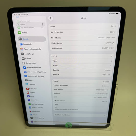 WiFi Only Apple iPad Pro 13" M4 512GB 26.3 Space Black MVXU3LL/A