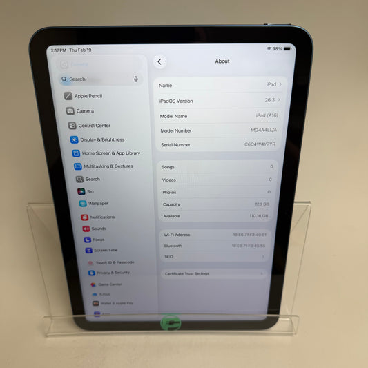 WiFi Only Apple iPad 11" (A16) 128GB Blue MD4A4LL/A