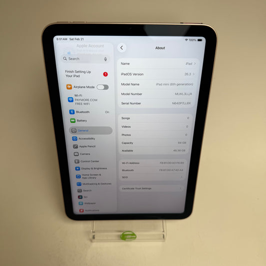 WiFi Only Apple iPad Mini 6th Gen 64GB Pink MLWL3LL/A