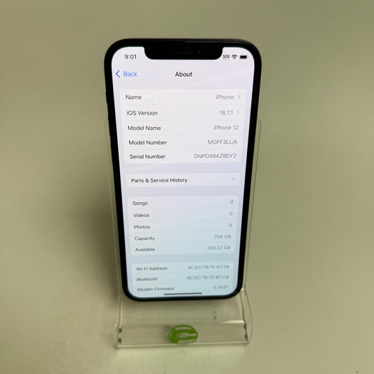 Broken Unlocked Apple iPhone 12 256GB 18.7.1 MGFF3LL/A Bad Batt