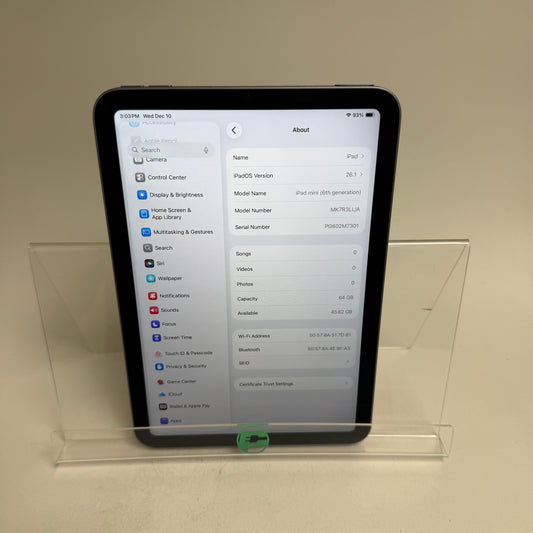 WiFi Only Apple iPad Mini 6th Gen 64GB Purple MK7R3LL/A