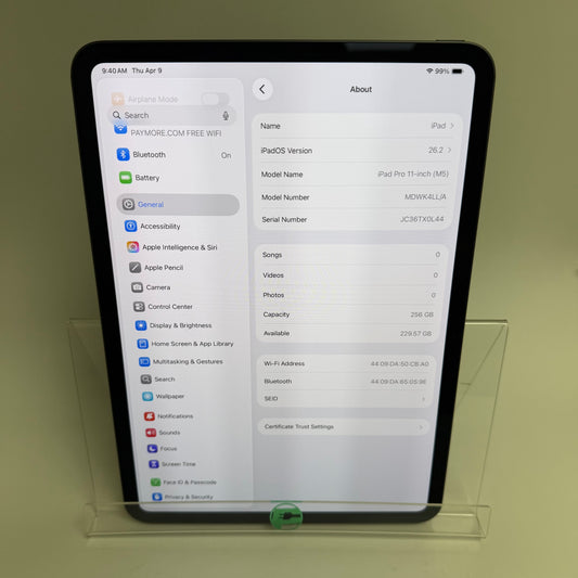 WiFi Only Apple iPad Pro 11" M5 256GB Space Black MDWK4LL/A