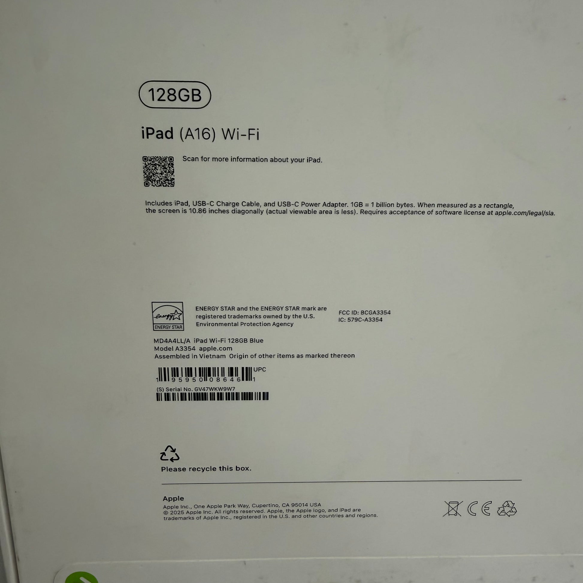 | Serial# | GV47WKW9W7 / D7T9WD7N19 |