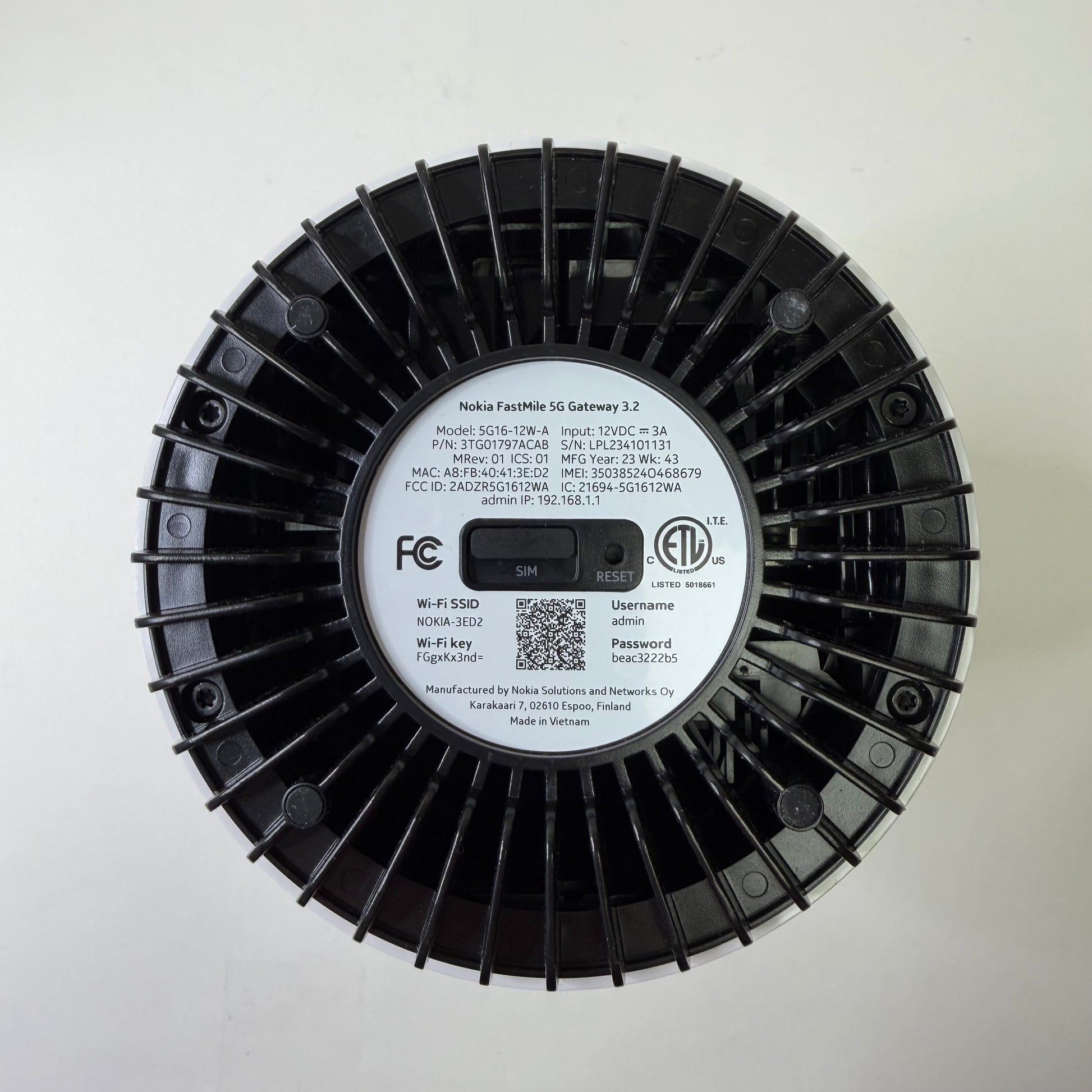 Nokia FastMile 5G 3TG01797ACAB Gateway 5G 3.2